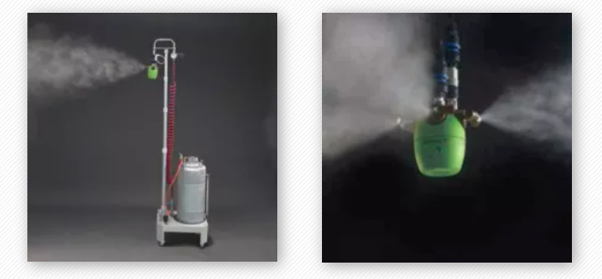 通过空压机将洗消剂雾化,形成干雾状态。一台AE-KIT可以解决800立方米以上的空间范围干雾喷洒。适合于各类工厂环境的大面积洗消和空气湿度调节。