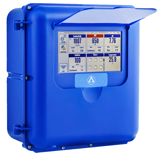 7 "彩色触摸屏是专业设计提供适当的解决方案,包括腐蚀,水垢和微生物生长的所有操作的冷却塔。综合功能和用户友好的导航允许最终控制解决方案。